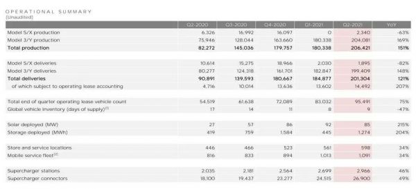 特斯拉2021年Q2财报