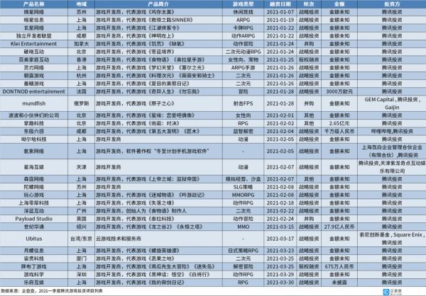 从游戏类型来看,一季度腾讯投出的游戏项目覆盖多种品类,既包括二次元、女性向、射击等热门品类,也包括RPG、SLG、MMO等传统品类,还在休闲益智、沙盒、模拟经营等健康休闲品类有所布局。