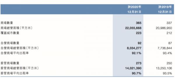 根据红星美凯龙2020年年报显示,截止到报告期,公司经营92家自营商场,总经营面积8,034,277平方米,平均出租率92.1%。此外,公司旗下还有273家委管商场。自营商场加委管商场共覆盖30个省、直辖市、自治区的223个城市。