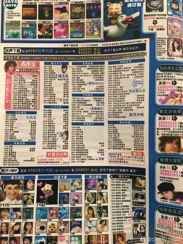 相比之下,我妈的小灵通所自带的单音铃声显得寡淡得很。但那个时候的手机铃声简直无孔不入,“想下载这首歌作为您的手机铃声吗?联通用户请发送xxxx”。电视中循环播放三遍的广告,主动伸出了橄榄枝,邀请她进入潮流世界,我妈难抵诱惑,付费两元。几天之后,她成为掌握当年潮流曲库的能力者。