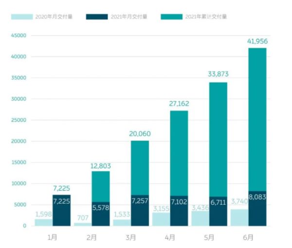 8,083台车,是蔚来在6月的交付量,首超八千台,创历史新高,同比增长116.1%,一步步朝着月交付过万的门槛迈进。