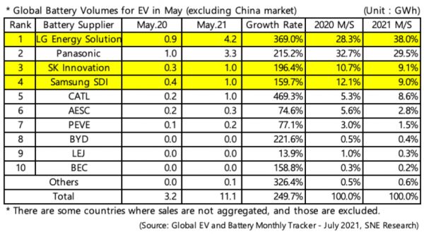 尽管LG化学在宁德时代正式为特斯拉供货之后就又走下了神坛,但是它在2020年所作出的成绩已经大幅拉近了和宁德时代之间的市场差距,也为它在2021年5月份的第三次逆袭提供了进身之阶。
