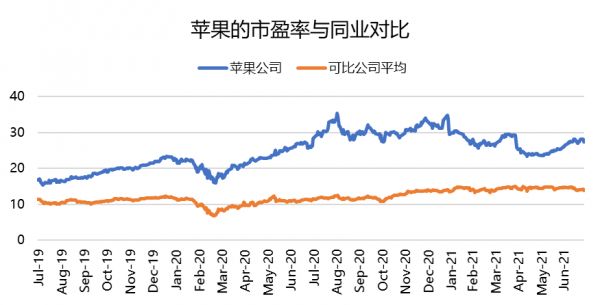 不过相对于国际同行仍然有一些溢价,毕竟作为全球科技龙头,它的稀缺性无可替代。但反过来说,哪天它因为增速放缓等原因,股价均值回归,到20倍PE,也并不是不能理解的。