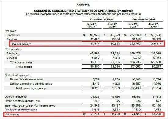 苹果2021第三季度财报