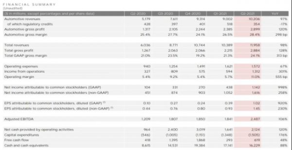 财报显示,特斯拉第二季度营收120亿美元,同比增长98%;净利润首次突破10亿美元,达到11亿美元,同比增长998%。