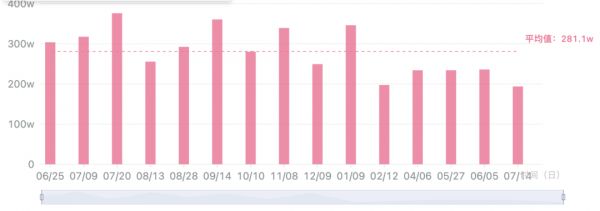 最直接可视的是流量持续性问题。据新站数据,李子柒账号在B站的近15个作品 (时间跨度:2020.6.25-2021.7.14) ,播放量、弹幕数整体呈下滑趋势,2021年以来更新的绝大多数视频这两个维度的数据低于平均值。