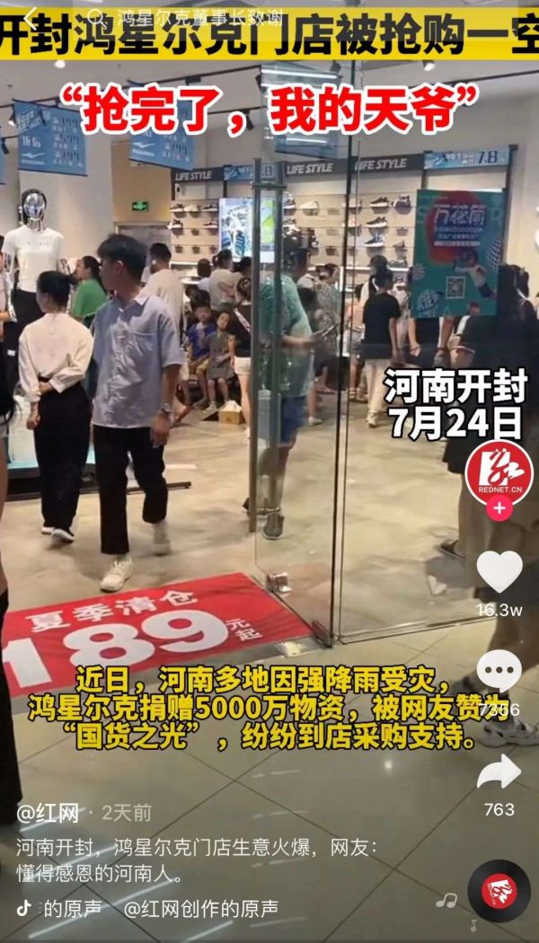 鸿星尔克低调捐款,200万网友冲进直播间“野性消费”