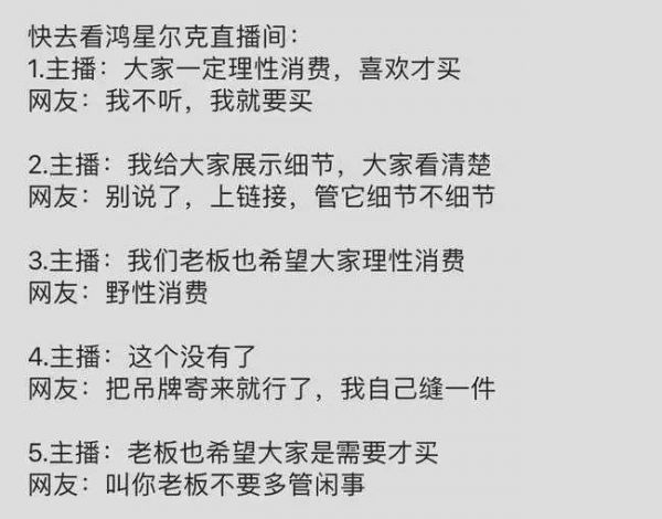 比如主播说:我们老板说了,要理性消费。网友:告诉你们老板,少管闲事。