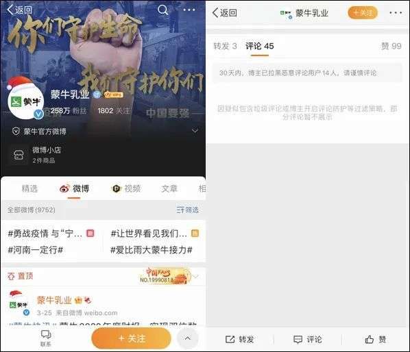 小红搜索了蒙牛的官方微博后发现,它们的官微目前已开启了评论审核功能。