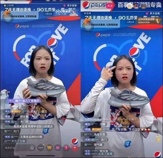 在Pepsi百事鞋类的品牌直播间里,女主播一脸无奈地看着屏幕上的弹幕,神情委屈。因为不是国货品牌而受到许多网友的谩骂和质疑,小姐姐只能回复称“你们不要再骂我了!”“我也需要工作的!”。