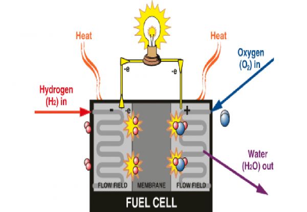 所谓氢燃料电池就是氢气与氧气通过电化学反应产生电能的能量转化装置。其放电的机理是氢气从阳极进入,在催化剂的作用下释放电子形成带正电荷的氢离子,接着氢离子从阳极穿过电解质膜跑到负极与氧气结合生产水,而电子则源源不断的流入电路形成电流。