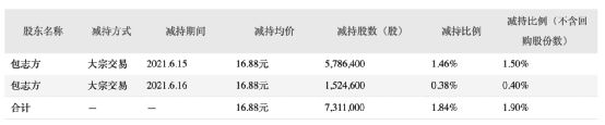 2021年6月16日,公司收到包志方先生的通知,包志方先生通过深圳证券交易所大宗交易的方式减持本公司股份共计152.46万股,占本公司总股本的0.38%,占剔除公司回购股份数量后的总股本0.40%,本次减持实施完毕。