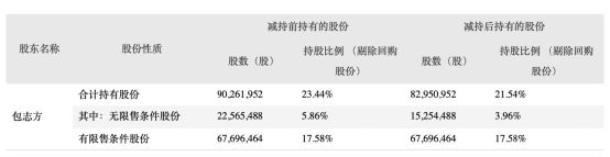 这也就是说,包志方两日共计减持公司股份731.1万股,减持股份均价为16.88元/股,套现1.23亿元。减持后,包志方的持股占比为21.54%。