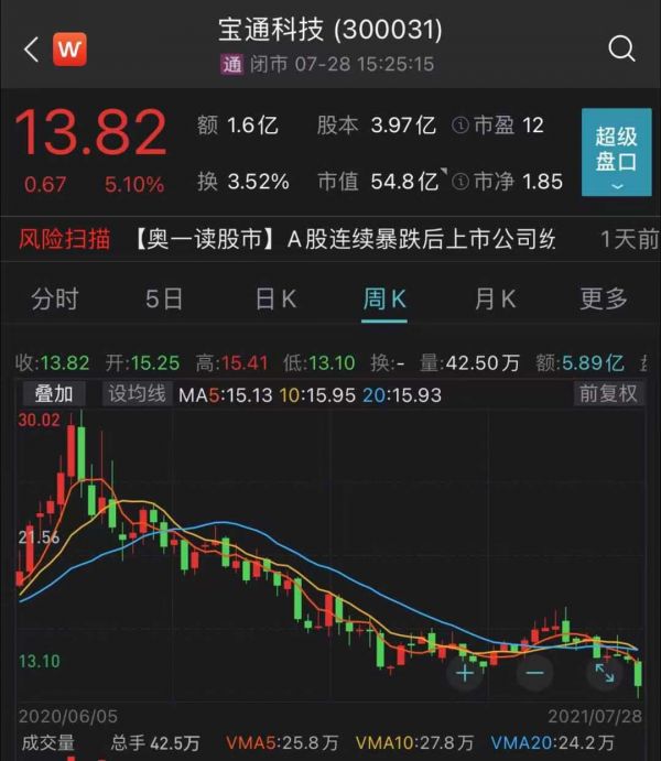 Wind数据显示,宝通科技上市以来经历了多轮暴跌,自去年7月份创出高点30.02元/股以来,该股累计跌超54%。业内人士指出,此轮倡议的员工增持,或许也与公司股价连续走低有关。截至收盘,股价报13.82元/股,总市值为54.8亿元。