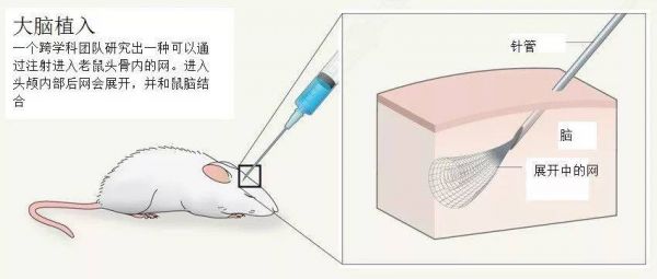 另一个团队则在研究一种纳米级别的、带有电极的神经网,这种神经网小到可以通过针管被注射进脑内。