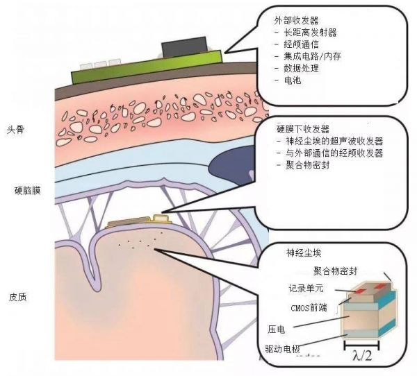 这就是跨领域团队创新的优势的展现,DJ Seo解释道:“有很多在这个领域不会被考虑的技术,但是我们可以借鉴它们的一些原则。”比如神经尘埃的灵感就来自于微芯片技术和RFID(就是能不进行物理接触就能用门卡打开房间门的技术),想必你也能从中看到其它领域对这个技术的影响: