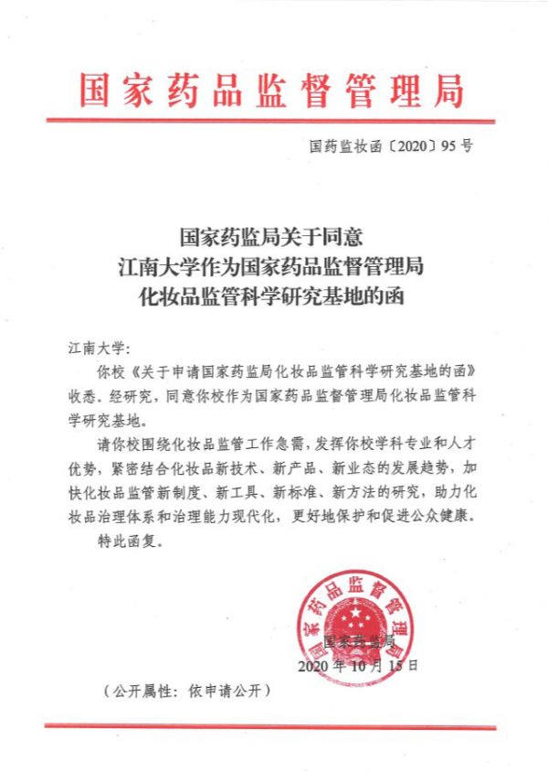 ▍截自江南大学新闻网:江南大学获批国家药监局化妆品监管科学研究基地