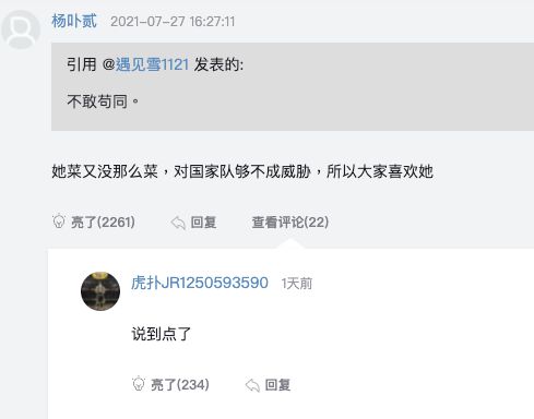 但虎扑讨论体育的落点,不一定在于赛场本身。本届比赛女足表现欠佳,但点开帖子,虎扑老哥对比赛的点评并不停留在比分层面,而讨论足球基础建设——“当欧洲开始重视女足,用那套早已成熟的市场体系来做女足基础建设时,早晚吊打其他国家”。