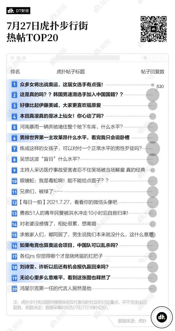7月27日18时40分,我们在知乎逛了逛。当时知乎热榜上的TOP20话题中有7条与奥运相关。