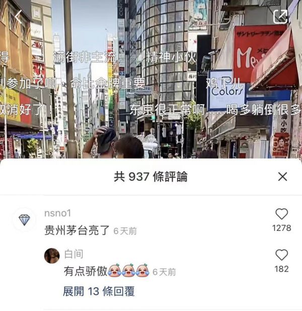 比如小红书上最火的一条奥运笔记《东京奥运会现状》。在日博主给大家拍摄东京街头画面、讲解奥运相关事件时,不少人把关注点放在了视频里一张一闪而过的茅台广告牌上。