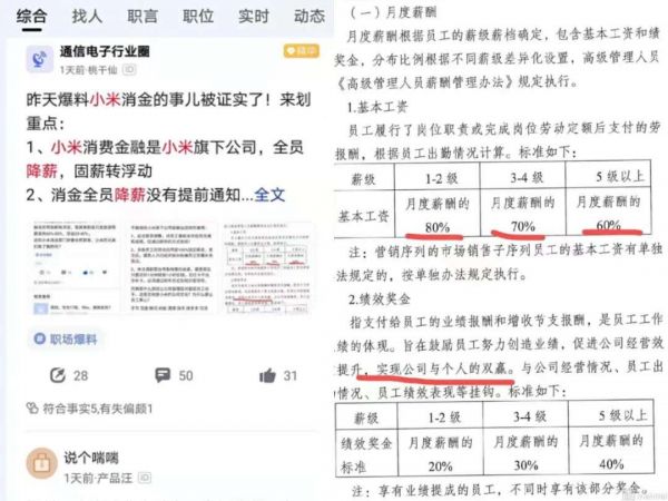 近日,有疑似小米消费金融员工在脉脉爆料:小米消费金融全员变相降薪,并表示:此次薪资调整,对员工事前未做任何沟通和说明,仅通过邮件方式告知。