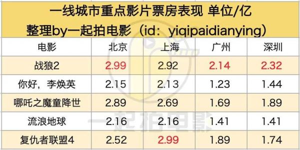 另外,一座城市的经济地位与人口数量,每年也都发生着巨大变化。因此, 相比其他城市划分,一线城市的定义,也成为了目前唯一没有争议的事实。 北京、上海、深圳、广州,成为目前当之无愧的一线城市。虽然在GDP总量上,重庆已经超过了广州。但是在城市票房方面,一线城市依旧稳居全国四大票仓。