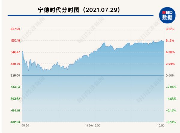 资本市场闻风而动,宁德时代29日股价早盘逆势拉升,最高涨幅达到7.62%,截至收盘,股价上涨6.05%收报556.80元,总市值近1.3万亿元。值得一提的是,宁德时代连续两天反弹,涨幅达到12.5%,市值增加1438亿。