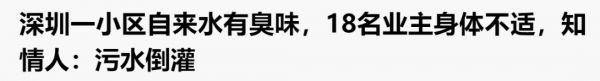 前段时间,深圳一个高档小区就因为供水问题上了新闻,该小区的供水系统和排污系统存在设计缺陷,在深圳连日暴雨后,排污系统的污水逆流进了供水系统,导致小区的部分住户喝了几天“粪水”,最终在供水局的调查下才真相大白,对供水系统进行了修复。