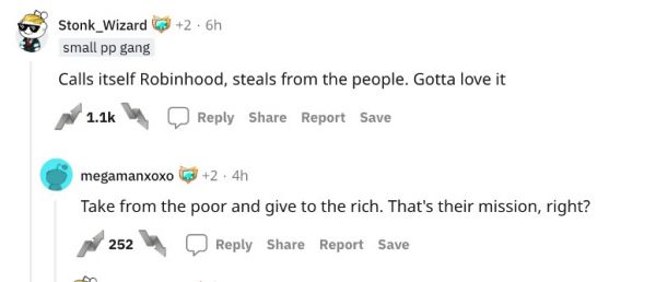 Wallstreetbets上就有一个关于Robinhood的高赞贴:“不要看它的名字是侠盗罗宾汉,它实际上干的是把更多穷人的财富送给有钱人收割的勾当。”