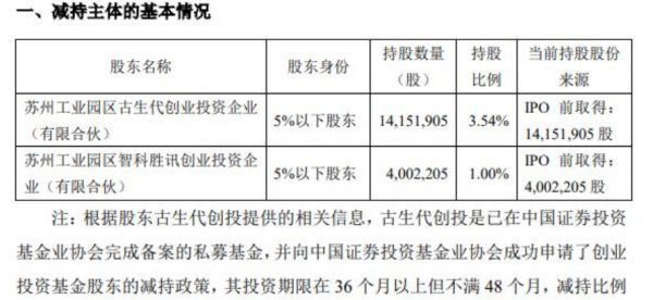 这是继7月22日晚,苏州工业园区古生代创业投资企业(有限合伙)(以下简称“古生代创投”)和苏州工业园区智科胜讯创业投资企业(有限合伙)(以下简称“智科胜讯”)宣布拟合计减持4.54%寒武纪股票之后,又一家IPO首发限售股股东即将减持寒武纪的股票。