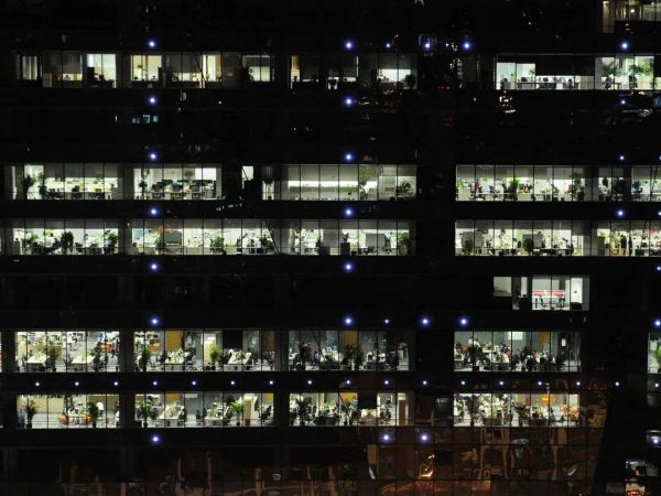 深夜写字楼内加班的人