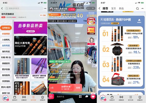 佳钓尼的淘宝旗舰店与直播间,种类已经愈发丰富。