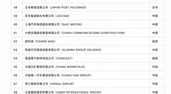 多家中国互联网公司入围《财富》世界500强:京东阿里等排名均有提升