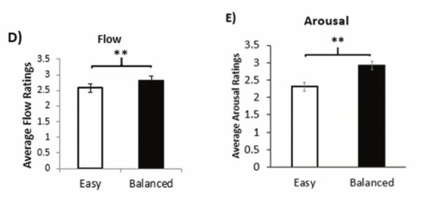 而后,通过回答问题的方式,研究人员对不同类型游戏玩家的心流状态、唤醒水平进行评分。