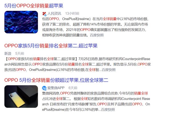 当CounterpointResearch发布5月份全球智能手机市场报告后,很多媒体以“OPPO全球销量超苹果,跻身全球第二”、“OPPO超越苹果,位居全球第二”为题大肆进行报道,但事实上该说法是极不严谨的。