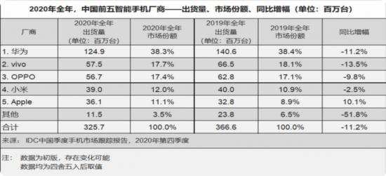 将时间线拉长,结合2020年全年销售数据来看或许更值得玩味。据IDC发布的数据,2020年vivo全年智能手机销量为5750万台,与2019年同期相比销量虽下滑13.5%,但仍位居第二,仅次于华为。