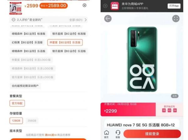 《IT时报》记者发现,以128G内存版本的华为nova7se乐活版为例,淘宝某线上经销商卖2578元,而华为商城售价为2299元,但后者需要等7月23日开售时拼手速。