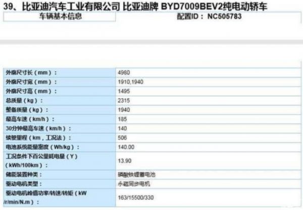 尽管目前比亚迪官方还没有公布更多的参数信息,但是小雷还是从今年3月份工信部的申报名单中发现了这款车型的相关数据。工信部数据显示,汉EV标准续航版豪华型作为比亚迪汉家族的入门车型,它搭载了一组能量密度同样是140Wh/kg,但是容量更小的刀片电池。