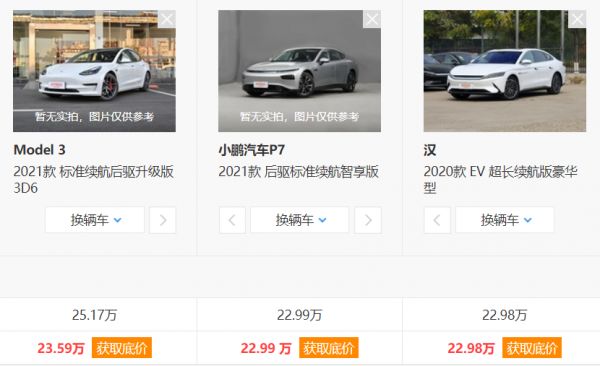 7月30日,特斯拉官宣旗下的Model 3标准续航升级版降价1.5万元,由原来的25.09万元降至23.59万元。而此时它在国内的两位竞争对手——比亚迪汉EV超长续航版豪华型以及小鹏P7后驱标准续航智享版车型的售价分别为22.98万元和22.99万元。