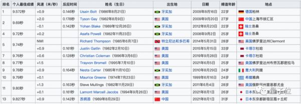 而这些纪录的保持者,除了Justin Gatlin在打破纪录时是33岁以外,其他人均为30岁以下。
