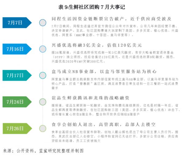 7月份,继6月前置仓模式的每日优鲜、叮咚买菜先后上市,生鲜电商的社区团购模式再次迎来残酷洗牌期,同程生活宣告破产,食享会悄然死亡,仅有头部玩家拿到融资。