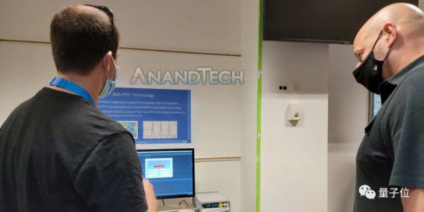 在这张图片中,我们可以看到墙上的海报上写着“80G PHY Technology”,表示英特尔正在开发80Gbps速率的连接物理层(PHY),这是当前雷电4接口带宽(40Gbps)的两倍。