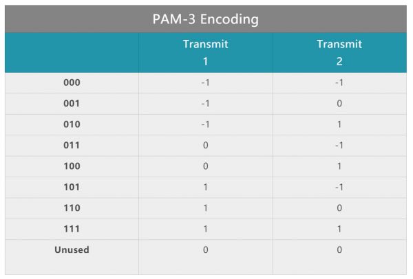 在这种情况下使用PAM-3的原因是,可以在不受PAM-4所需的额外限制的情况下,实现更高的带宽。