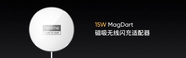 所以,realme还推出了另外一款功率只有15W的MagDart磁吸无线闪充。据介绍,这款产品的厚度仅有3.9mm,比MagSafe充电器薄26.4%;充电效率方面,90分钟可将4500mAh的手机充至100%——而苹果充满2775mAh的电池则需要4小时。