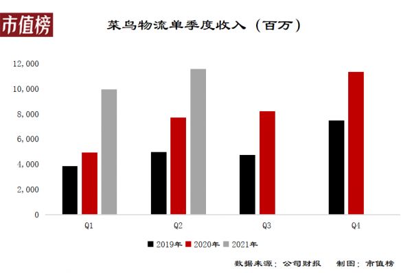 跨境零售Q1的收入为108亿元,同比增长54%,在此驱动之下,菜鸟物流服务表现也亮眼,收入116亿元,同比增长超过50%。