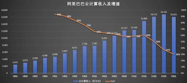 从上图可以看出,阿里云季度营收同比增速保持了稳定增长,但出现了下滑的趋势。
