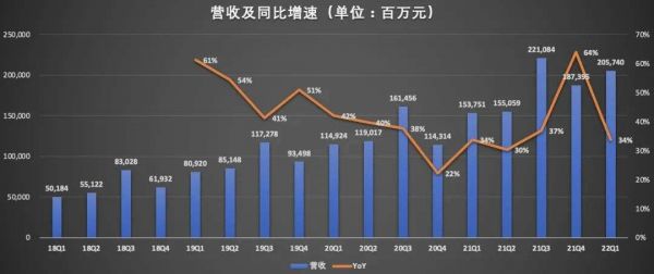 财报数据显示,阿里巴巴2022财年Q1实现2057.48亿元的营收,同比增长34%,持续稳定增长。但低于市场预期的2094.51亿元。