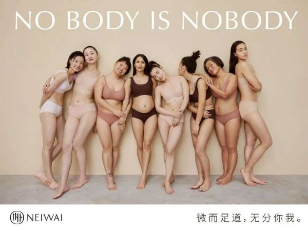 比如专注于内衣和家居等贴身衣物的品牌内外,在今年3月官宣的最新品牌slogan “NO BODY IS NOBODY”(没有一种身材,是微不足道的) ,其中的内涵即是认真接受身体的每一份真实纹理,包括晒痕、雀斑、生长纹、皱纹等……其产品也是纯色的极简样式。这些虽然正好是站在完美生活的另一面上,但给内外带来了极大的品牌成功。