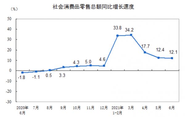 那么到底是什么原因导致阿里核心电商业务增长放缓的呢?行业增长趋势放缓未尝不是主要原因之一。在去年高基数基础上,行业增速有所回落。根据国家统计局的数据,6月份社会消费品零售总额37586亿元,同比增长12.1%;比2019年6月份增长10.0%。
