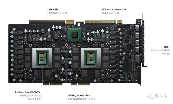 该模块就是把2个Radeon Pro W6800X GPU通过nfinity Fabric Link板载连接,可提供512GB/s的显存带宽。